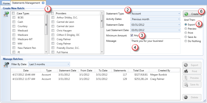 You can always return to the Statements Management screen to export, print, preview, save as, or delete previously created statement batches.
