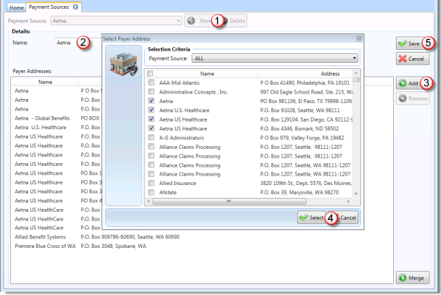 Before consolidating all of your payors through the "Payment Sources" utility, consider that you may have many payors in your system that you no longer receive payments from. Therefore, we suggest that you begin by establishing payment sources for all of your most common payors (Aetna, BCBS, etc.)