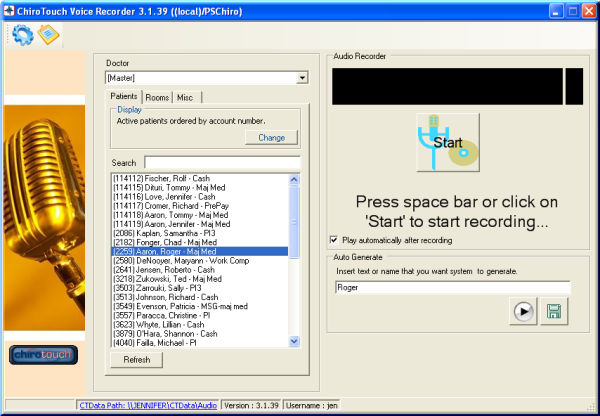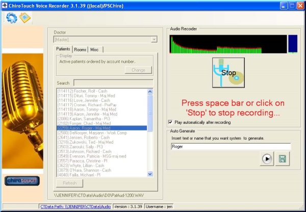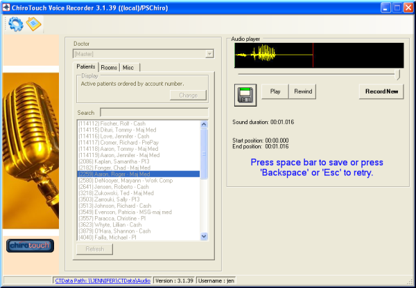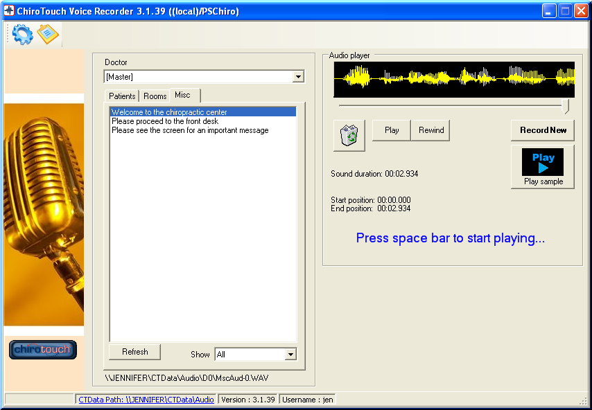 It is crucial to sample your audio files, because it allows you to hear how patient audio files play with room recordings and miscellaneous greetings. As CT Voice Recorder replaces your staff’s voice, it represents the office and as such should sound professional.