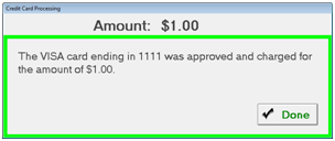 If the card swiped was approved, you will see the following: