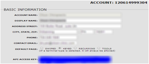 You will find the API access keys within the Basic Information on the Manage Settings screen. You will use these keys in the next step to link ChiroTouch to your merchant account.