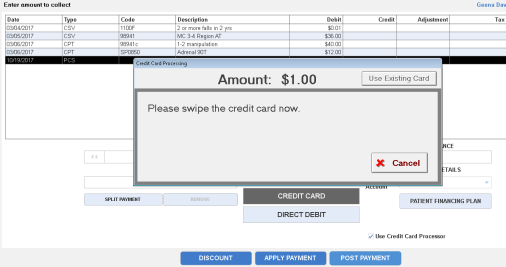 Your patient’s cardholder data is encrypted and securely retained, allowing you to access the credit card data on file and apply a payment directly to the patient’s ledger.