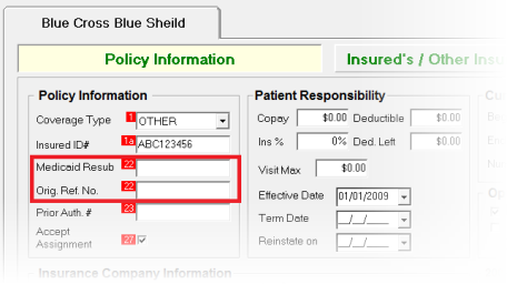 Box 22 is in reference to Medicaid patients for Medicaid Resubmission Codes and original reference numbers.