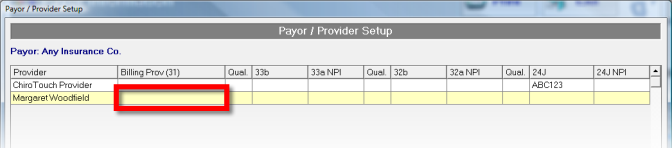 There are 2 different 24j fields on the claim form: 24j and what we refer to as 24jNPI. The individual NPI populates 24jNPI by default. This box also populates box 33a. The NPI number can be accessed in the Providers section of the Maintenance application. Box 24j is not commonly used and is designated for alternate payer-specific identifiers. These numbers require a qualifier, which would populate 24i.