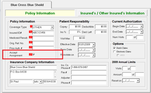 ChiroTouch defaults to “Accept Assignment” automatically. If you do not wish to accept assignment, clear the Accept Assignment checkbox.
