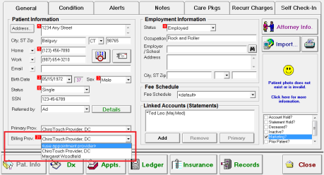 When entering patient information in patient management, you have the option to choose the default billing provider.