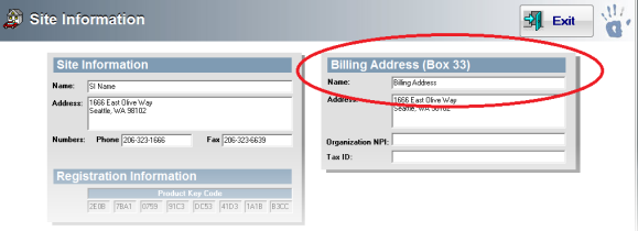 Box 33 contains the billing provider's information. To access this information, go to Maintenance > Site Information.