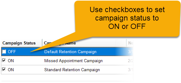 IMPORTANT: When converting from the web-based CTInTouch to our new InTouch (v7.2 going forward), be sure to check that your existing campaigns are set to the status you want what for each.