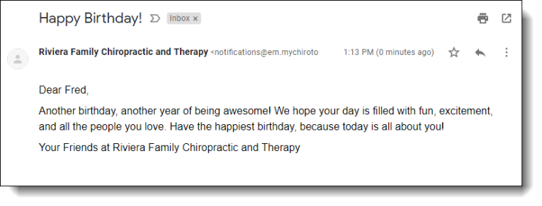 Who doesn't love being wished a happy birthday? You can send out birthday greetings to your patients automatically, and tailor different message types for male and female patients if you wish.