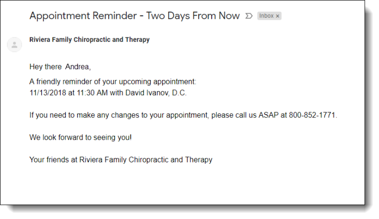 Set InTouch to send out up to three staggered appointment reminders in advance of every appointment. You can also design specific messages for first-time patients as well as existing patients.