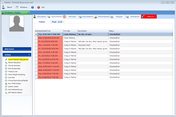 - Click the Appointments tab, and Past just below to select the correct appointment date to apply your Quality information.