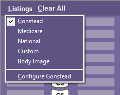 The section is configured to display Gonstead, Medicare, National and Custom listings systems, or you may choose to display body images. Each listing system will contain values specific to that system. You can change the system values, or select the Custom option to add your own listing values. Custom values should be used if you prefer to use your own codes for personal reference or to create new values based on other settings, such as Atlas or Diversified. You can thus easily recognize your own unique documentation techniques by customizing the values of the spinal segments.