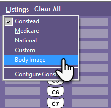 - Select Body Image from the Listings drop-down menu. The body image gender displayed reflects the gender assigned in the patient's account.