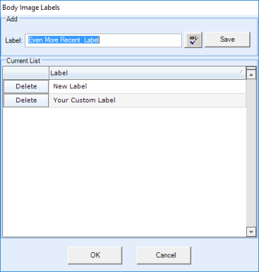 - Use the tools in the Body Editor to mark up the image with circles, rectangles, a free-form pen, lines, and custom labels. Click OK to save your changes.