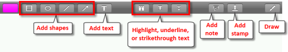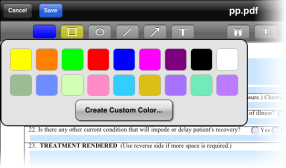 Custom colors are available in both the pen tool and the shapes tools. To create a custom color, PDF Viewer.
