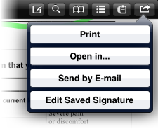 to view other options such as printing, opening, and e-mailing the PDF, as well as editing the provider signature saved on the iPad.