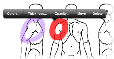 - Touch and hold the drawing you wish to edit or delete. Options appears, and you will be able to change the color, thickness, or opacity as well as move/resize the drawing or delete it.
