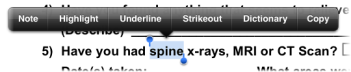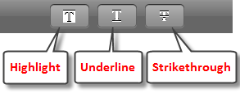 Tap one of these options to highlight, underline, or add strikethrough to text. These options apply to text present in the original PDF form and not to text fields or text that you have added via the text tool.