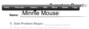 to add text to the PDF. Then tap the area where you would like to place the text. Type your text, and, when finished, hide the on-screen keyboard or tap another spot on the PDF. If you wish to change the text, tap it to view options for font, font size, or colors. You can also edit, move, delete, or copy the text.