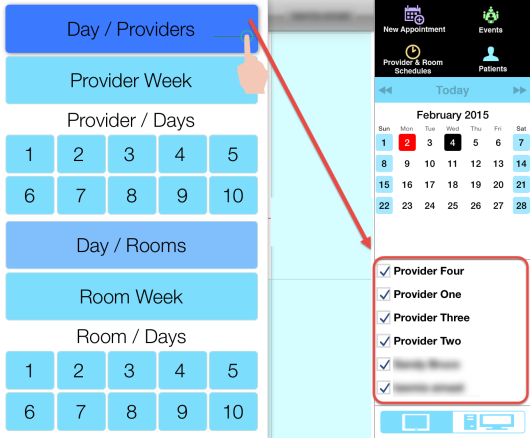 - Tap a number under Provider / Days or Room / Days. The number you select corresponds to the number of days in the view.